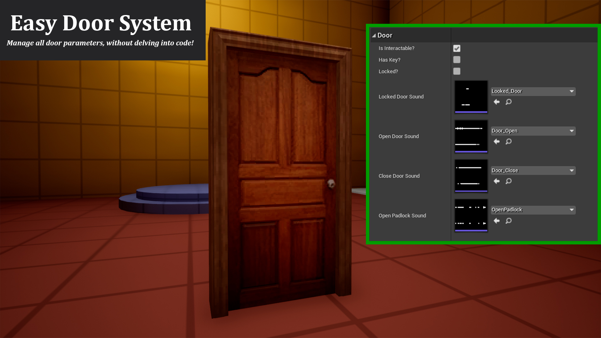 - Doors System (incl. Open door, Closed door, Closed door with boards, Closed door with code)