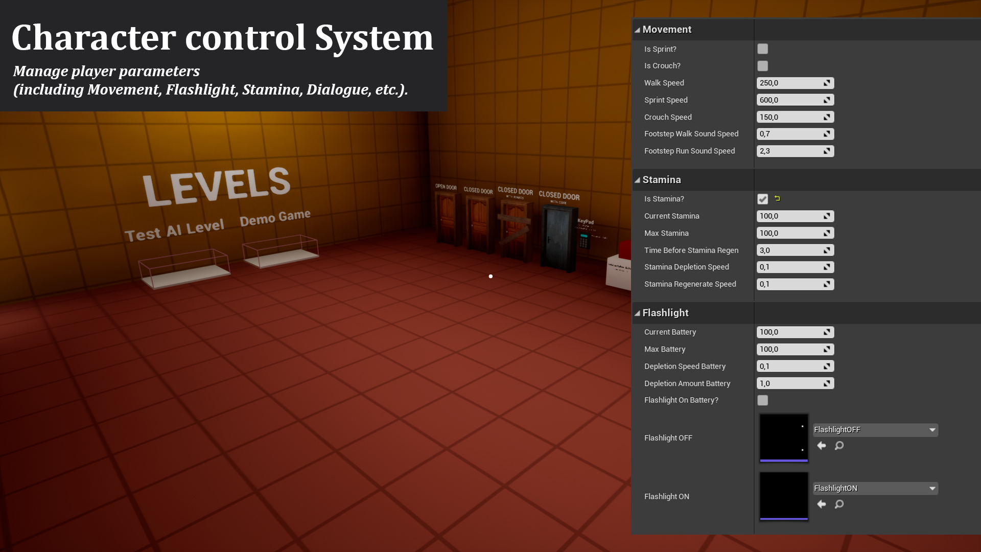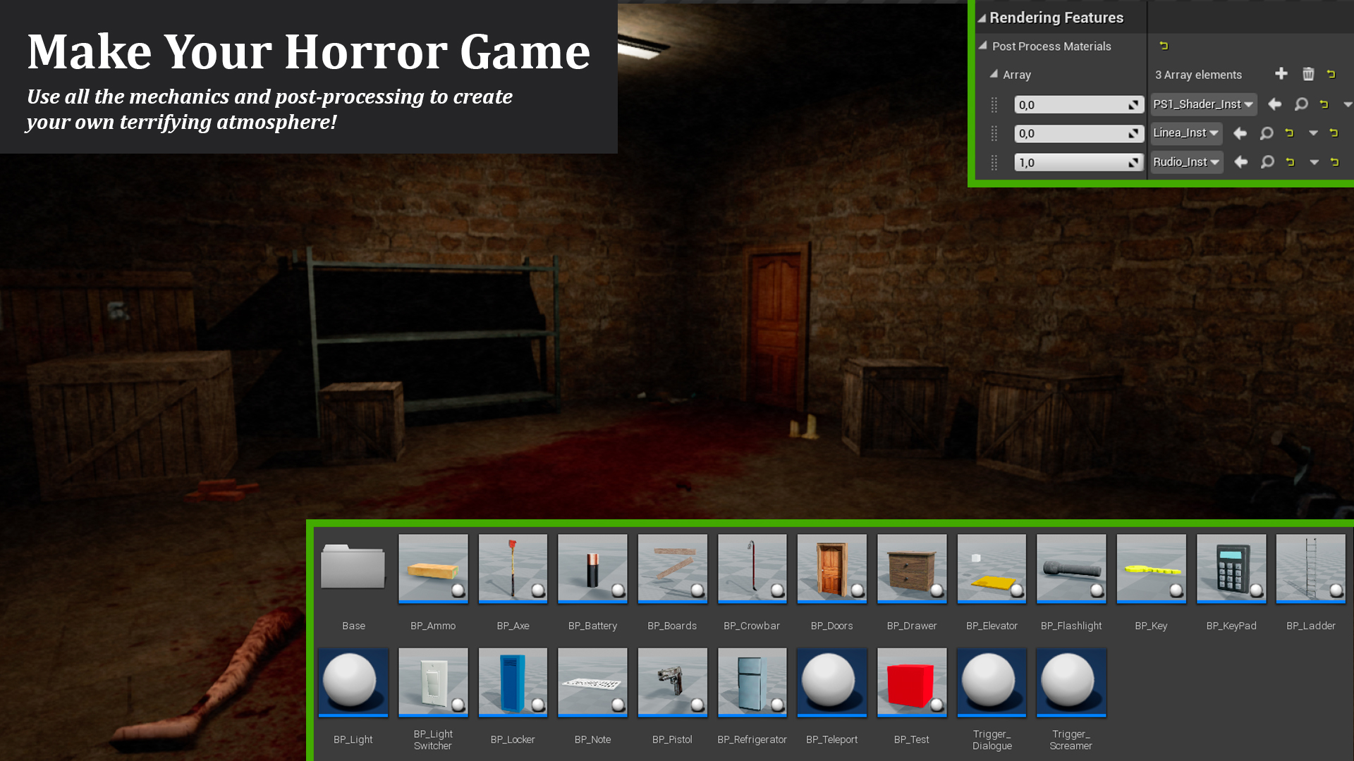 Horror Kit is a complete project for designing horror games. It allows you to experience various mechanics included in the asset and explore the possibilities of game creation without requiring any coding knowledge.